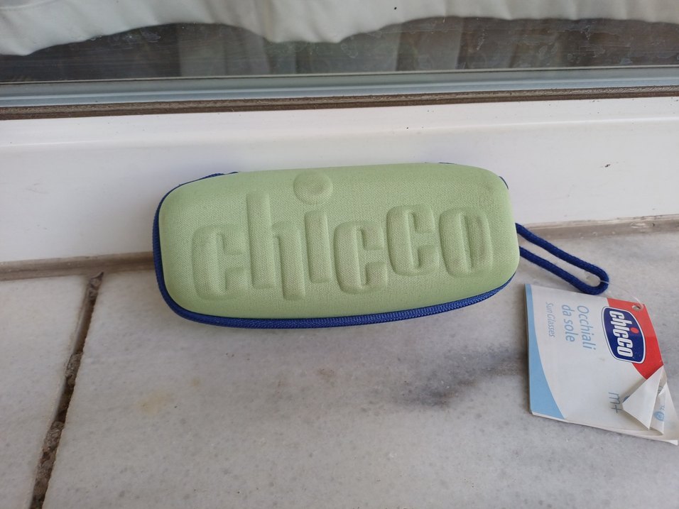 Chicco markalı, yumuşak kumaştan yapılmış, canlı yeşil renkte ve sade tasarımlı çocuk gözlük kutusu. #chicco#gözlük#