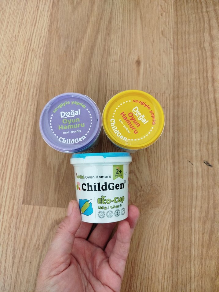 ChildGen Eco-Cup, 2 yaş ve üzeri çocuklar için pastel renklerde doğal oyun hamuru içerir. Yaratıcı oyun için çeşitli canlı renkler sunar. Sıfır açılmamış kutular