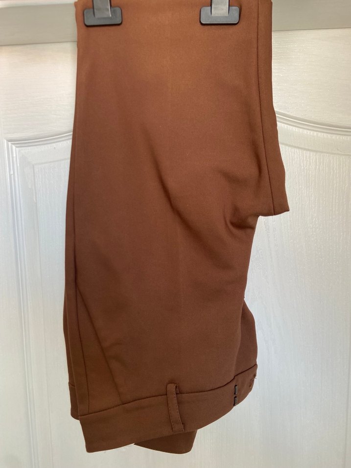 Bilek kısmına kadardır kemerden paçaya kadar 94cm paça 15.5 cm taba renginde 38 bedendir bir iki kere kullanıldı şık temiz herhangi bir sıkıntısı yoktur. taba#kahverengi#chıma#chımapantolon#38beden#38#şık#temizKlasik#klasikpantolon#tabapantolon#moda#bilekpantolon
