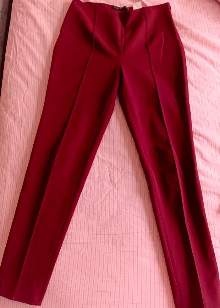 Şarap kırmızı rengi. Birkaç dikiş söküğü var. Onun dışında hiçbir sorunu yok.
