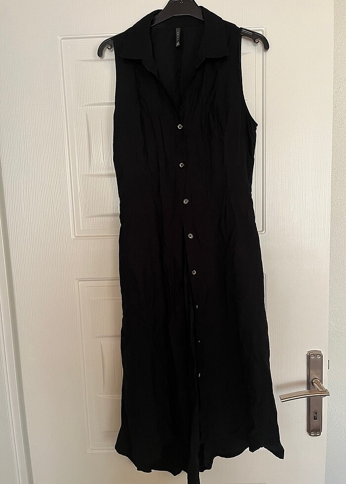 Chima siyah önden düğmeli yazlık elbise
