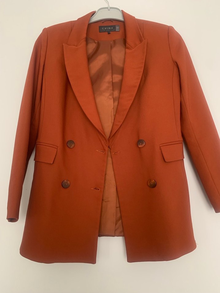 Kiremit rengi vatkalı chima blazer ceket. yaka kısmı çok şık duruyor çok az giyildi