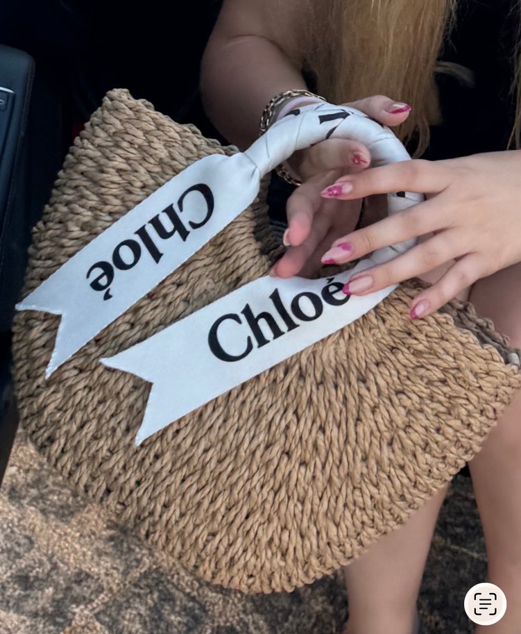 Bu beyaz örgü kadın çanta, Chloé yazılı baskılı kurdele ile bohem tarz sunar, günlük kullanıma uygundur.