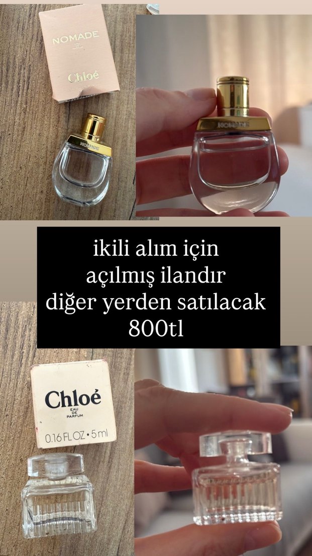 Chloé kadın parfümü, 5 ml, açılmış. İkili alım için 800 TL. Orijinal kutusuyla birlikte.