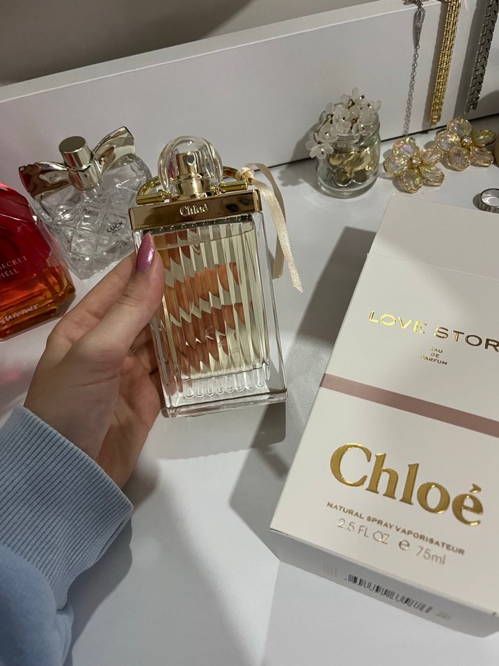 Chloé Lovesto kadın parfümü, 75 ml şişede, şeffaf ve kabartmalı tasarıma sahip, altın kapaklıdır. Orijinal kutusuyla birlikte sunulur.