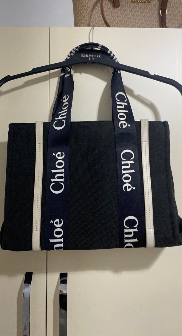 Siyah fleece kumaştan, baskılı Chloé askılı ve cırt cırtlı günlük kadın çantası.