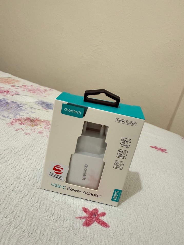 Choetech markasına ait beyaz USB-C güç adaptörü, 20W hızlı şarj, PD ve QC desteği ile telefon şarjı sağlar ⚡. 0 ürün.