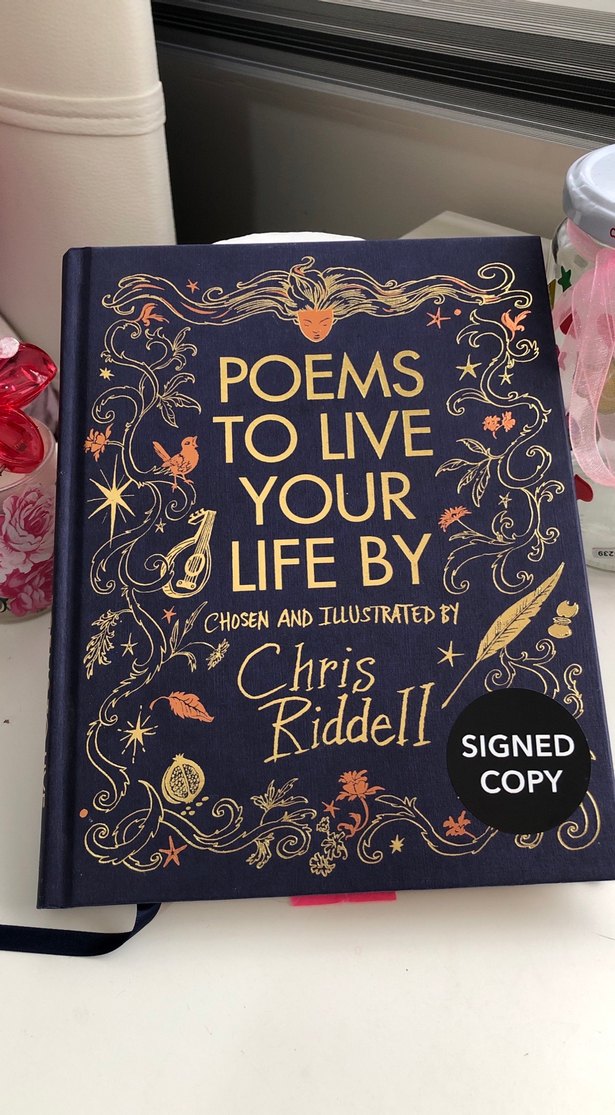 Chris Riddell tarafından seçilen ve çizilen "Poems to Live Your Life By" adlı şiir kitabı. Bu imzalı baskı, zarif kapak tasarımı ve ilham verici şiirler içerir. İngilizce ciltli raf no n1