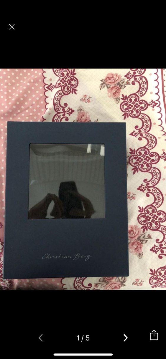 Önünde şeffaf pencere bulunan koyu renk kapaklı Christian Berg kutusuyla.