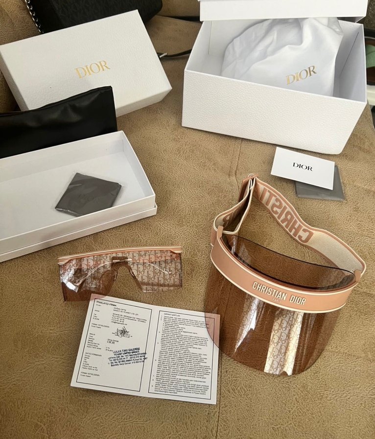 Tokalı bantlı ve şeffaf vizörlü bej Christian Dior kadın şapka. Marka adı bantta yer alır. Korumalı kutu ve orijinallik kartı ile birlikte. ️gözlük ile takım ikiside orijinaldir gözlük güler takıdan alınmıştır