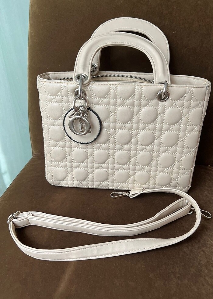 ORİJİNAL DEĞİLDİR. Sağdan sola: 26cm Yukardan aşağıya: 19cm Ayarlanabilir askısı da mevcuttur. #Çanta #KolÇantası #Bej #Beyaz #Krem #ChristianDior