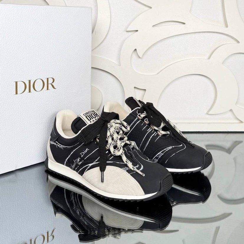 Dior markalı, baskılı siyah gri renkte, bağcıklı ve stiletto topuklu kadın spor ayakkabısı, sokak modasına yenilikçi dokunuş katıyor. Christian Dior D-Sketch Sneakers A+Plus İthal Ürün Bej siyah 37,38,39,41