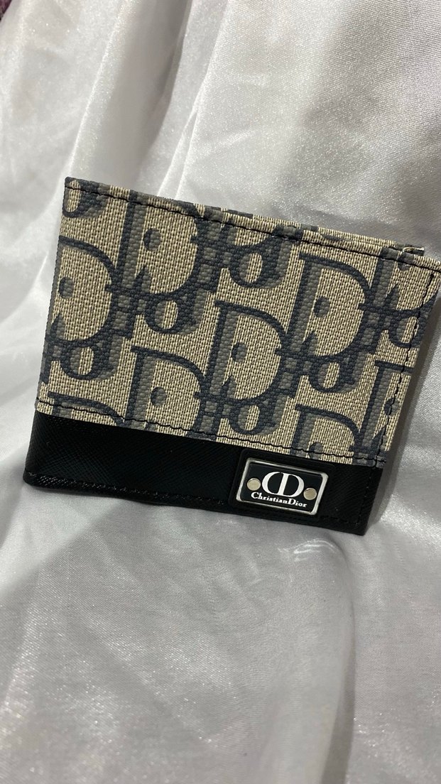 Christian Dior logosu baskılı gri tonlarda erkek cüzdanı, sokak stili ve Paris havası taşıyor. Alt kısmı dokulu ve metal logo plakalı.