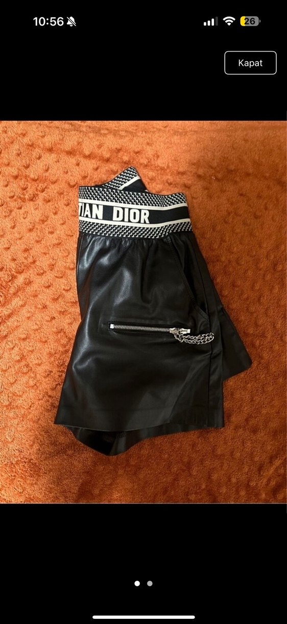 Christian Dior Kadın Siyah Deri Mini Şort