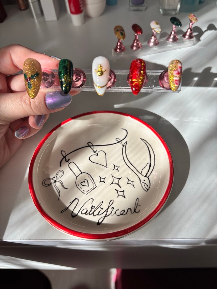 Tırnaklar primer, base coat, top coat, jel ve kalıcı oje kullanılarak yapılmıştır. M beden olup ölçülerine beden tablosundan ulaşabilirsiniz. Size özel bedenler ve tasarımlar için adresimden(@nailificentart) iletişime geçebilirsiniz.