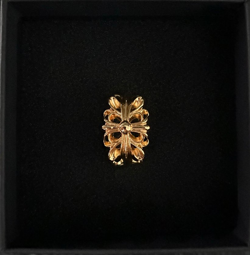 Altın renginde, düğüm desenli modern klasik tarzda kadın yüzüğü. Düğünler için gotik esintili şık bir seçim.