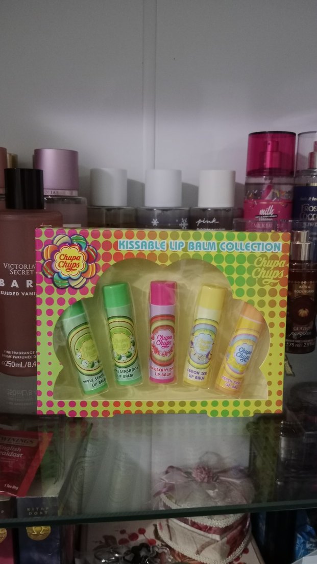 Chupa Chups Kissable Lip Balm Collection, yurt dışından birkaç kutu hediye geldi, bu kutuyu hiç kullanmadım. 2 elmalı, 1 çilekli, 1 limonlu ve 1 şeftali aromalı orijinal.