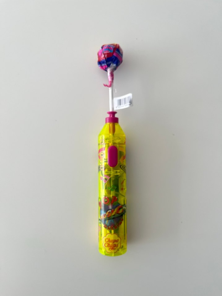 Renkli tasarım, pilli. Üzerinde açma/kapama düğmesi var. Açık olduğunda doğumgünü müziği çalarken üstteki lolipopu döndürüyor. Amerika’dan satın alındı. #chupachups #müzikli #lolipop #renkli #şeker #birthday