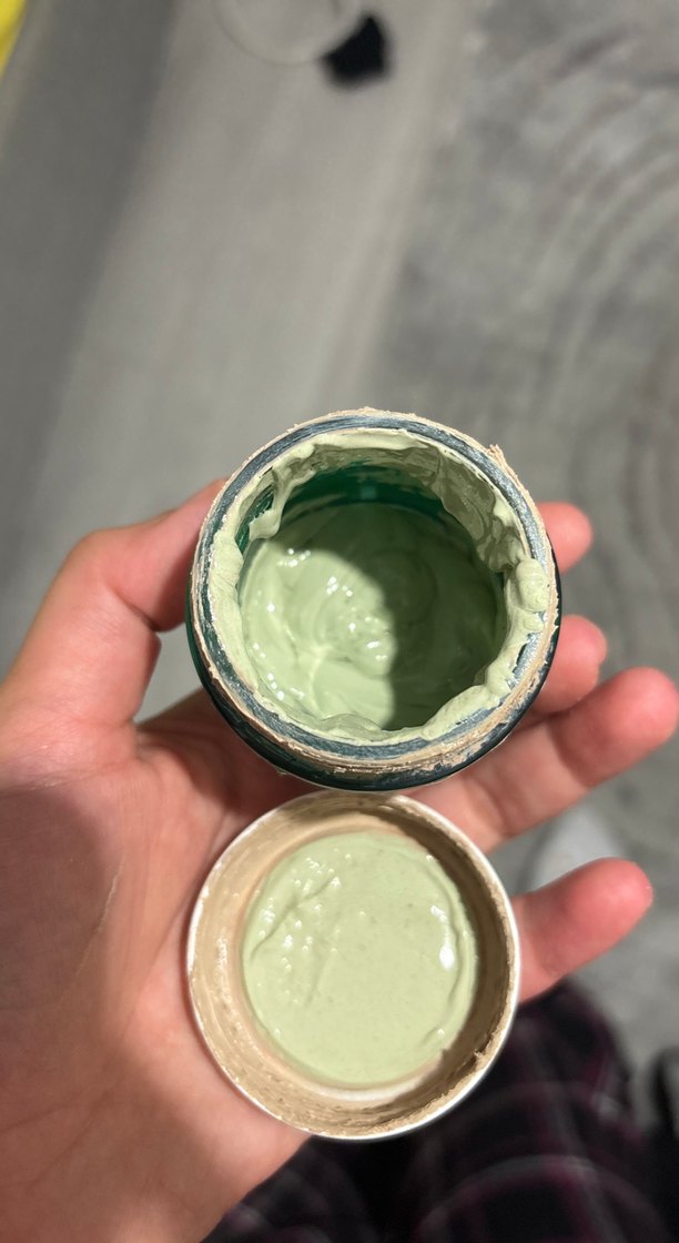 Küçük bir kavanozda yeşil krem balm, cilt uygulaması için uygundur. Balmlar pürüzsüz dokudadır. 20 kullanımlık kalmış gibi duruyor. Farklı ürün aldığımdan satıyorum