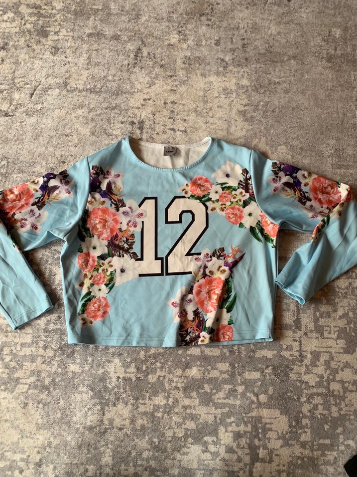 Çiçek Baskılı Mavi Kız Uzun Kollu Tişört