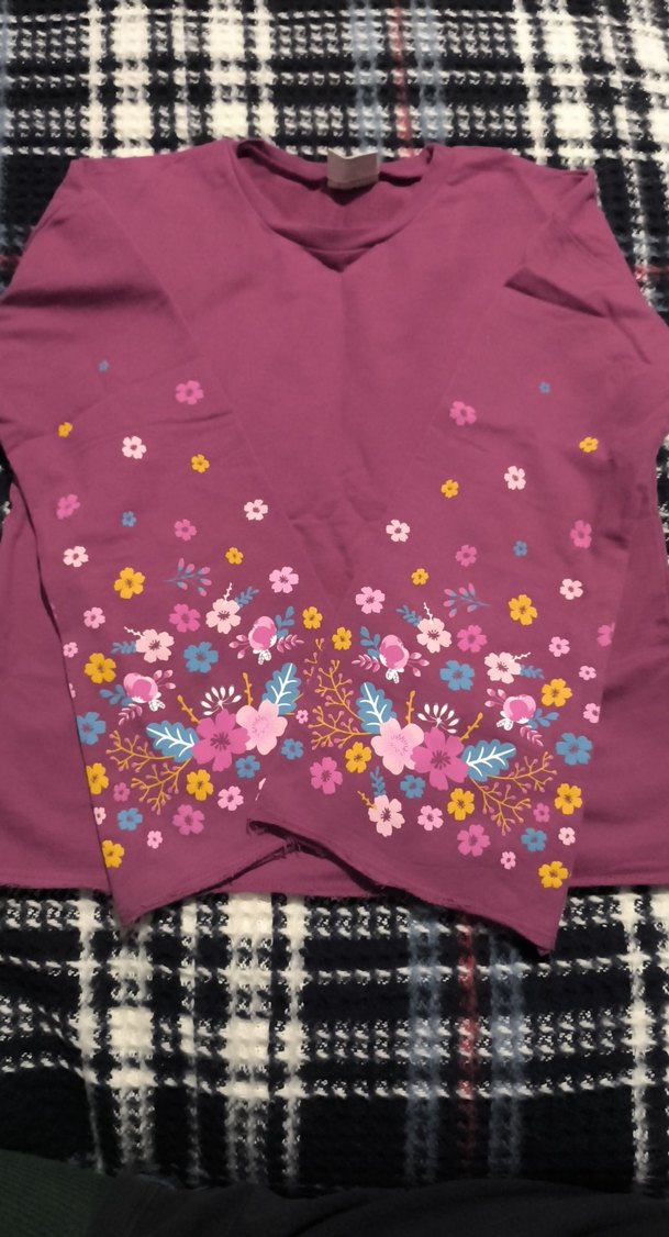 Çiçek baskılı ispanyol/geniş kol detaylı bluz. 0 ayarında, temiz kullanılmıştır. 10-11 yaş, 140-146 cm.