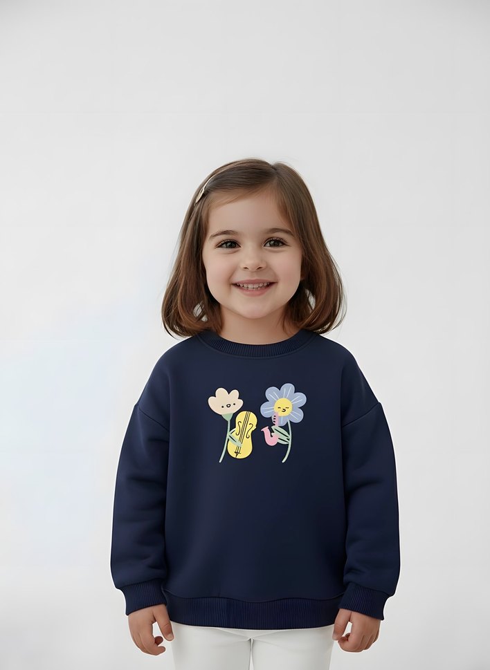 Çiçek Baskılı Uzun Kollu Kız Sweatshirt