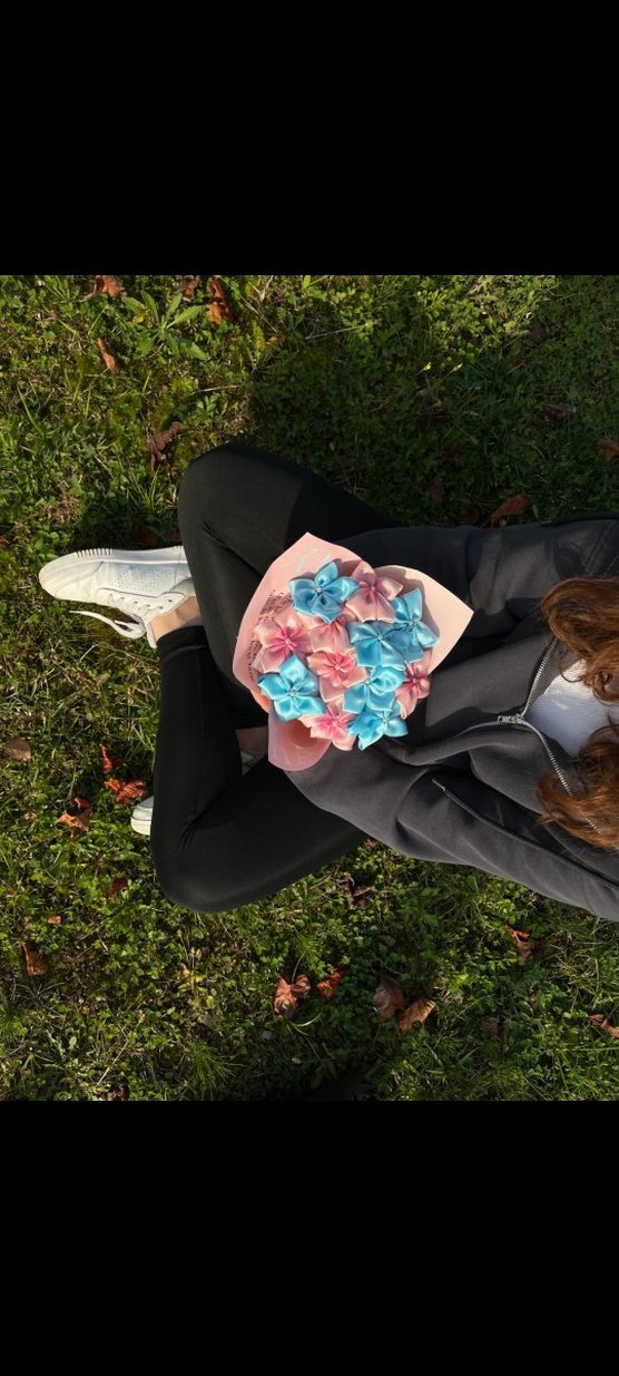 mavi ve pembe renkli çiçek buketi
