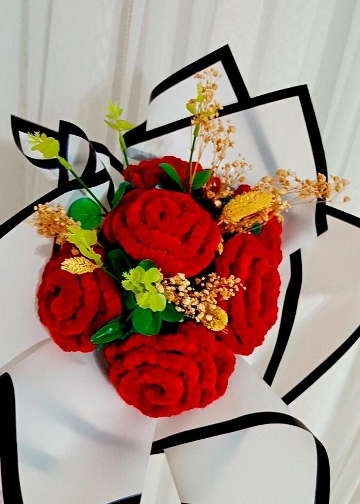 Örgü çiçek buketi
