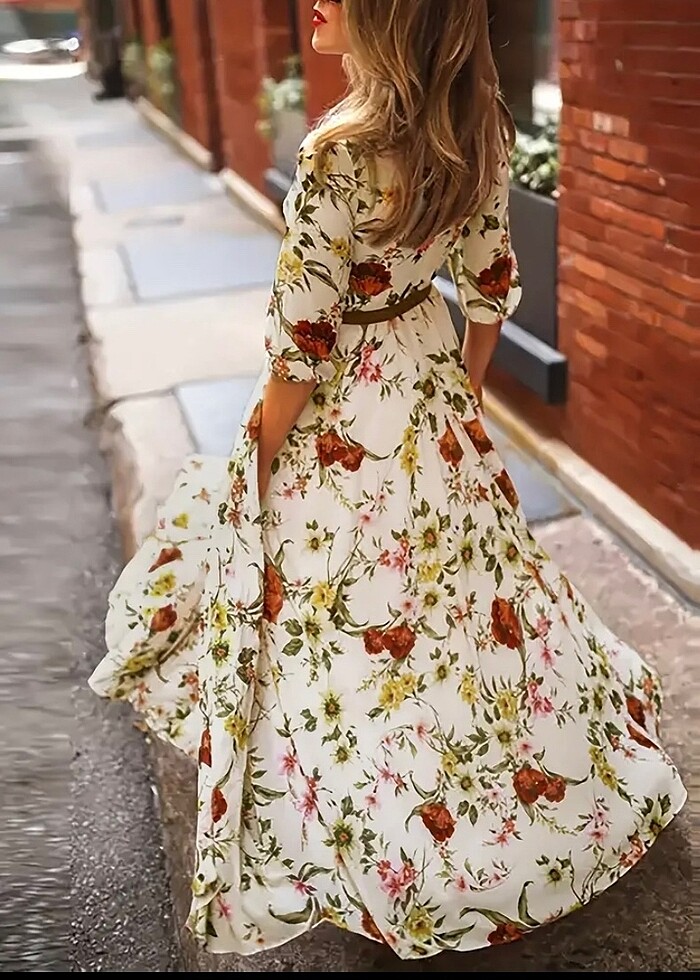 Çiçek desenli A kesim elbise , şık yaka yarım kollu elbise Bahar & Yaz için, kadın giyim
