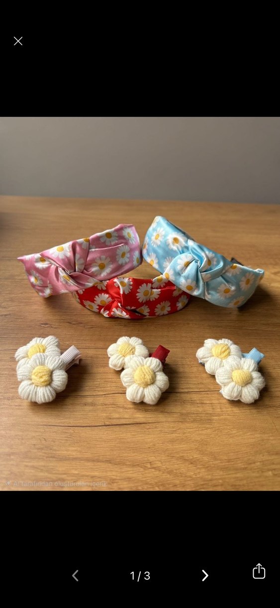 Çiçek Desenli Anne Kız Bebek Taç ve Toka Seti