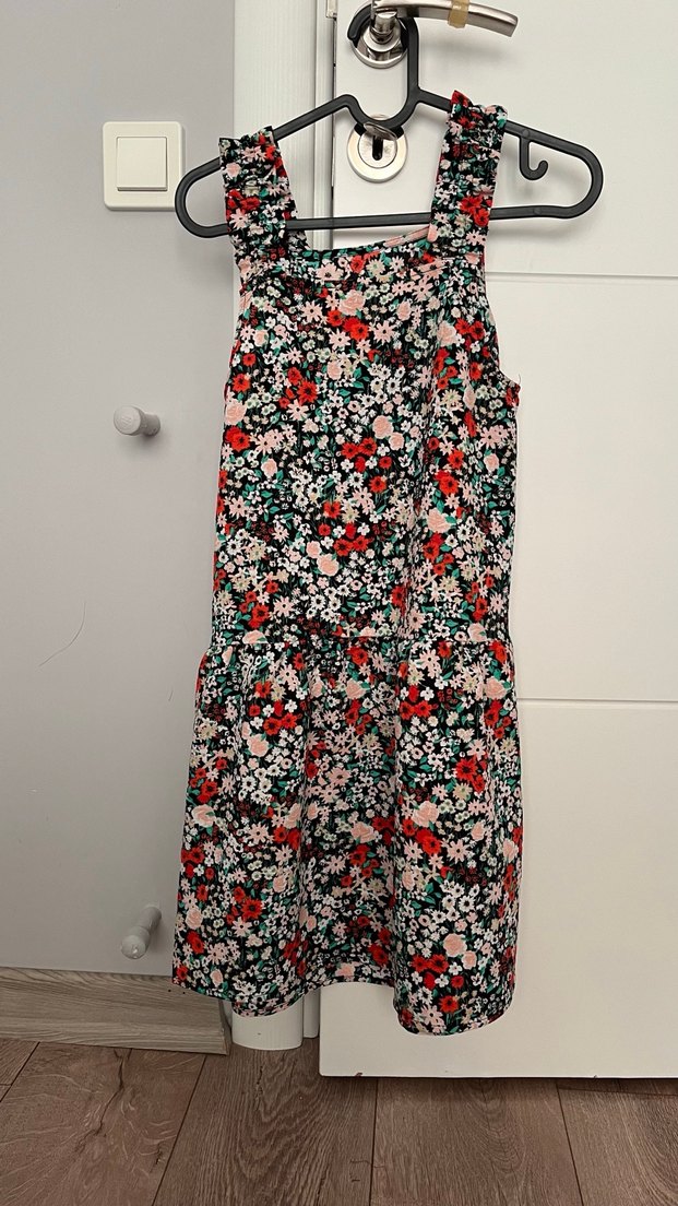 Kolsuz, bol kesim kadın elbisesi, koyu renkli çok renkli çiçek desenlidir. Askılı ve fırfır detaylı, bohem tarzına uygundur. Günlük kullanım için