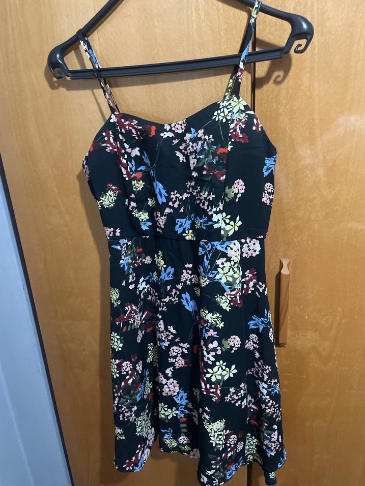 Askılı, straplez yaka ve drapeli detaylara sahip, çiçek desenli midi boy, sentetik kumaştan yapılmış dar kesim elbise. Trendy sokak stili için uygun.