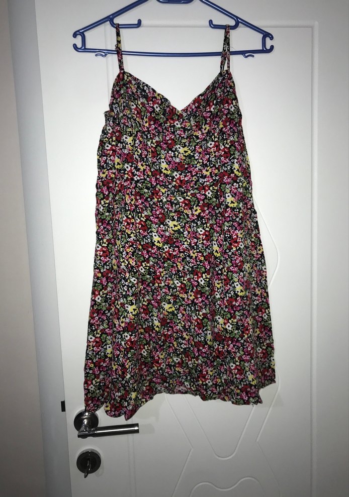 askılı çiçek desenli mini elbise yumuşak sentetik kumaştan bol kesim ve günlük kullanıma uygun