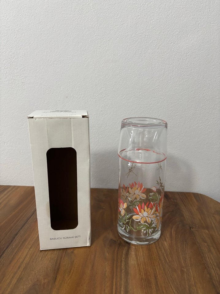 Canlı çiçek desenlerine sahip, şeffaf cam bardak seti. Bardaklar pürüzsüz doku ve klasik şekildedir. İçecek sunumu için uygundur.