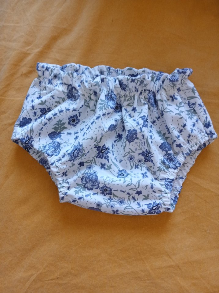 Pastel mavi çiçek desenli, lastikli bel kısmıyla rahat bebek külotu.