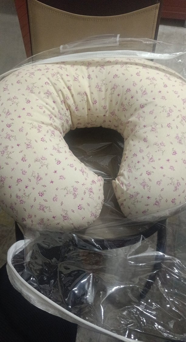 Bej renkte, pastel çiçek desenli yumuşak kumaştan yapılmış hamilelik ve emzirme yastığıdır.