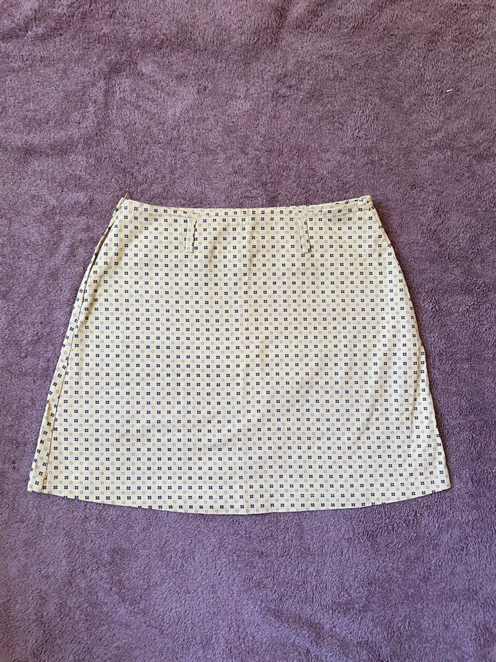 Çok tatlı bej renk çiçek ve puantiye desenli mini etek. Kemer takmak için halkaları da var. İç etiketinde 16 yaş yazıyor ama bence 36 bedene denk. Bana büyük geliyor 34 beden giyiyorum. Hafif likralı bir kumaşı var. Ölçüleri: bel:37 kalça:51 uzunluk:42cm