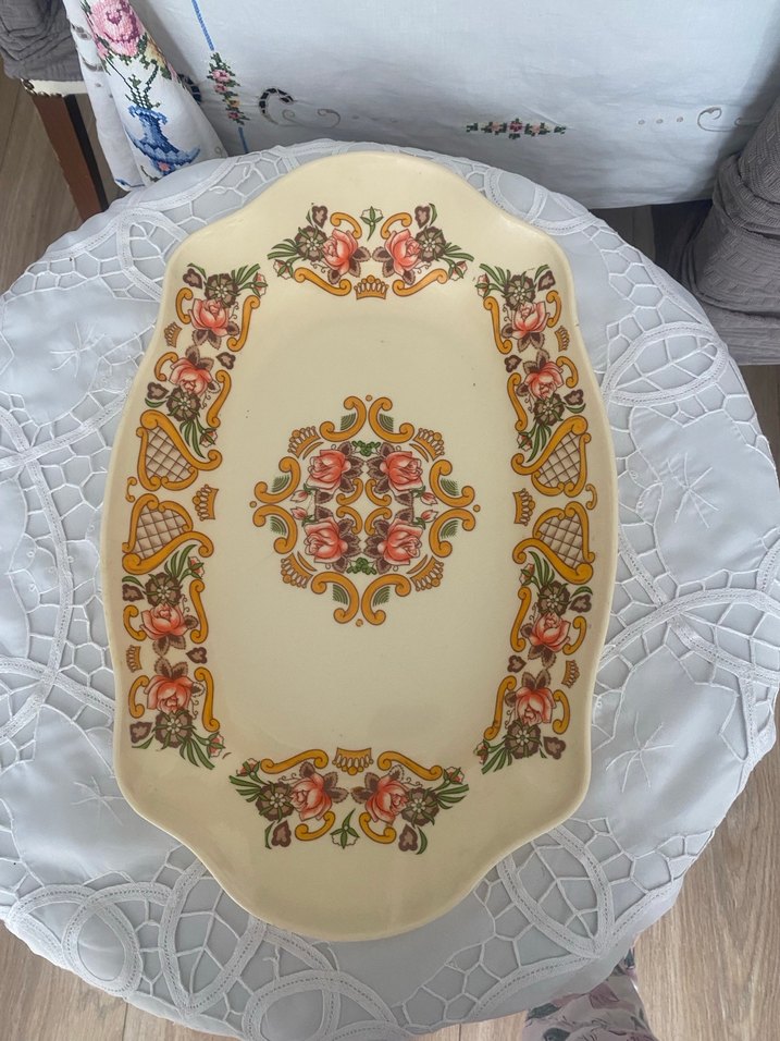 Çiçek Desenli Bej Servis Tabağı