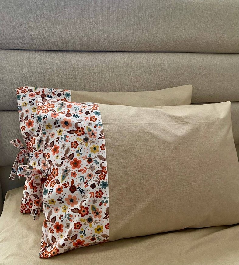 Çiçek Desenli Bej Yastık Kılıfı ikili bağlamalı