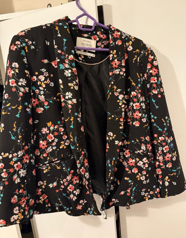 Çiçek Desenli Bershka Siyah Kadın Blazer