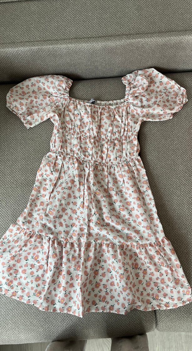 Çiçek Desenli Beyaz Elbise