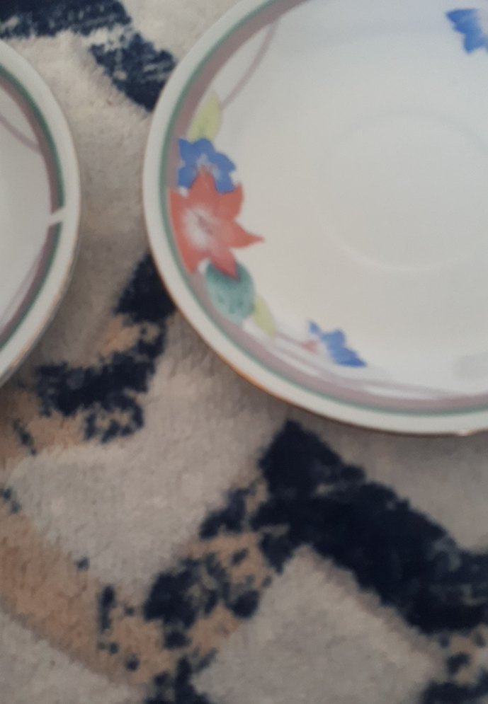 Çiçek desenli beyaz gıda kapları, gri tonlarında ince bir bordürle süslenmiştir.