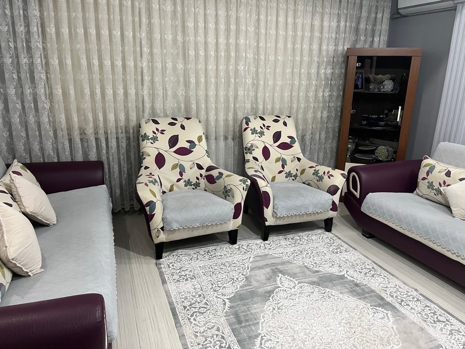 Mor ve krem tonlarda çiçek desenli, çağdaş tarzda koltuklar Oturma odanıza şık bir dokunuş katmak için ideal. 3 2 1 1 olarak kullanılmaktadır üçlü koltukta kol kısımlarda resimde belirttiğim deformeler var ikili koltukta da bir damla oje lekesi var