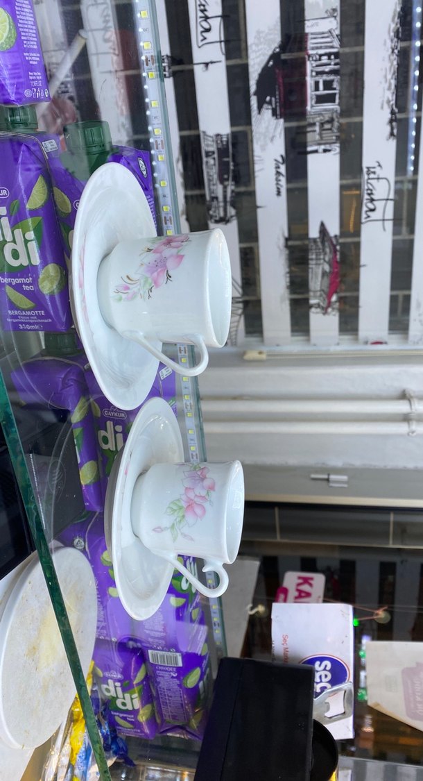 Beyaz kahve fincanları, renkli çiçek desenleriyle süslenmiş, altlıklarıyla birlikte sunulur. Küçük kahve servisleri için uygun. ☕ ürün iki adet fincan ve iki adet tabağından oluşmaktadır kırık vs yoktur defo yoktur