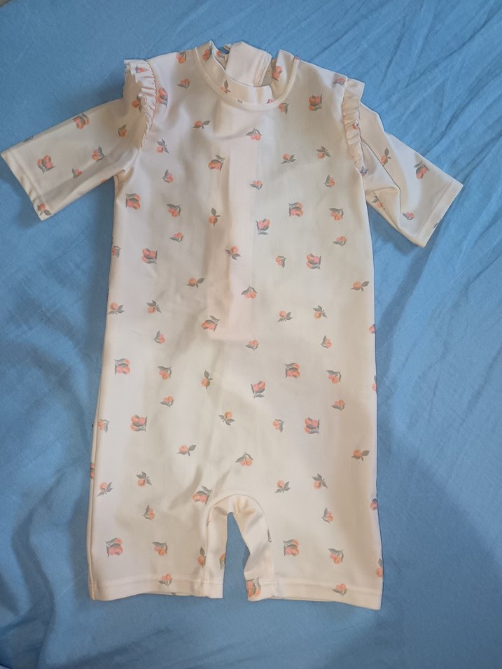Çiçek Desenli Beyaz Kısa Kollu Mayo