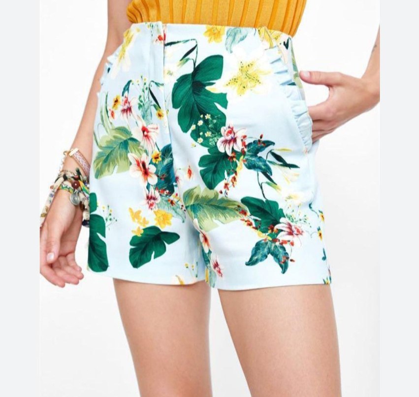 Çiçek Desenli Beyaz Mini Hamile Şortu