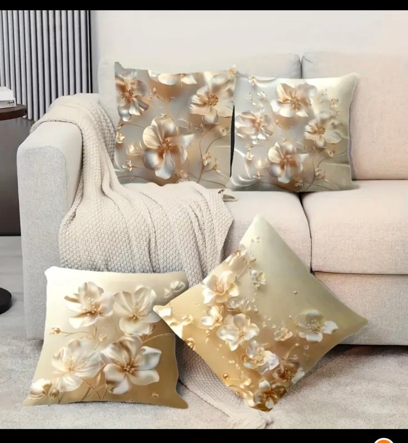 Beyaz zemin üzerine modern ve çiçek desenli, hafif tonlarda dekoratif kırlentler. Yumuşak ve şık bir dokunuş sağlar.