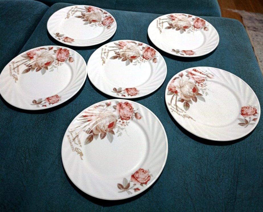 Pembe ve bej güllerle süslenmiş çiçek desenli beyaz tabak seti. Sofralarınıza zarafet katar. ️17cm ebatlarında porgold pasta tabağı