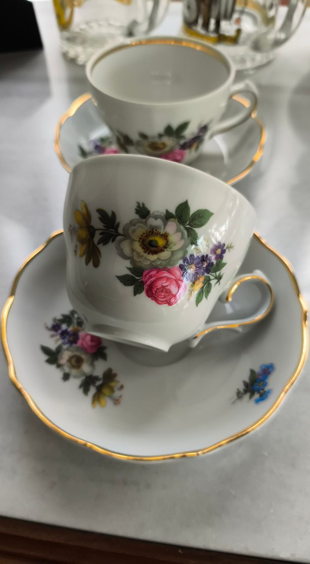 Çiçek desenli ve altın detaylı beyaz porselen fincan takımı, şık çay veya kahve keyifleri için uygun. ☕tek adet fiyatıdır
