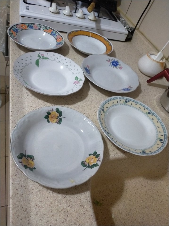 Beyaz porselen tabaklar, farklı çiçek desenleriyle yemek servisi için uygundur. Her tabakta benzersiz çiçek motifleri bulunmaktadır. ️6 adet 21 santim büyüklüğünde